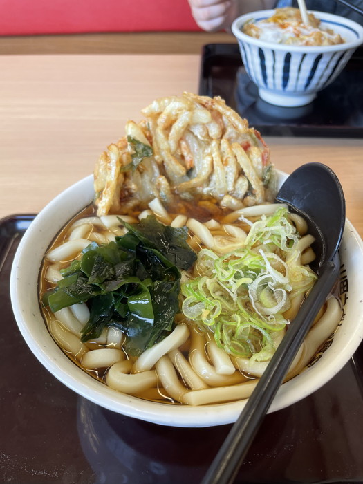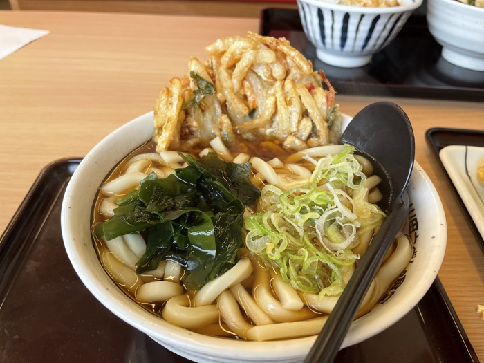 うどんの出汁は思ったよりあっさり薄味。食べ進めやすい味になっていました。