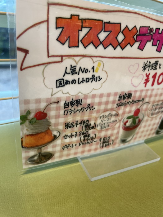 また自家製のクラシックプリンが押し出されていたので注文。固いプリンが気になって頼みましたが思ったほど固くありませんでした。