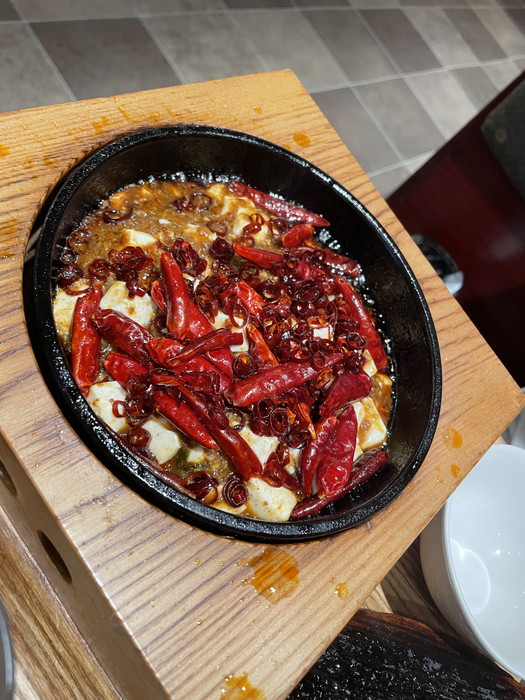 そして唐辛子たっぷりの四川風麻婆炒飯。嫁が1本丸々入っている唐辛子は食べられるのか店員に確認してパクパク食べていました。これ以外にも刻んだ唐辛子がたっぷり入っていてそれだけで十分辛かったです。