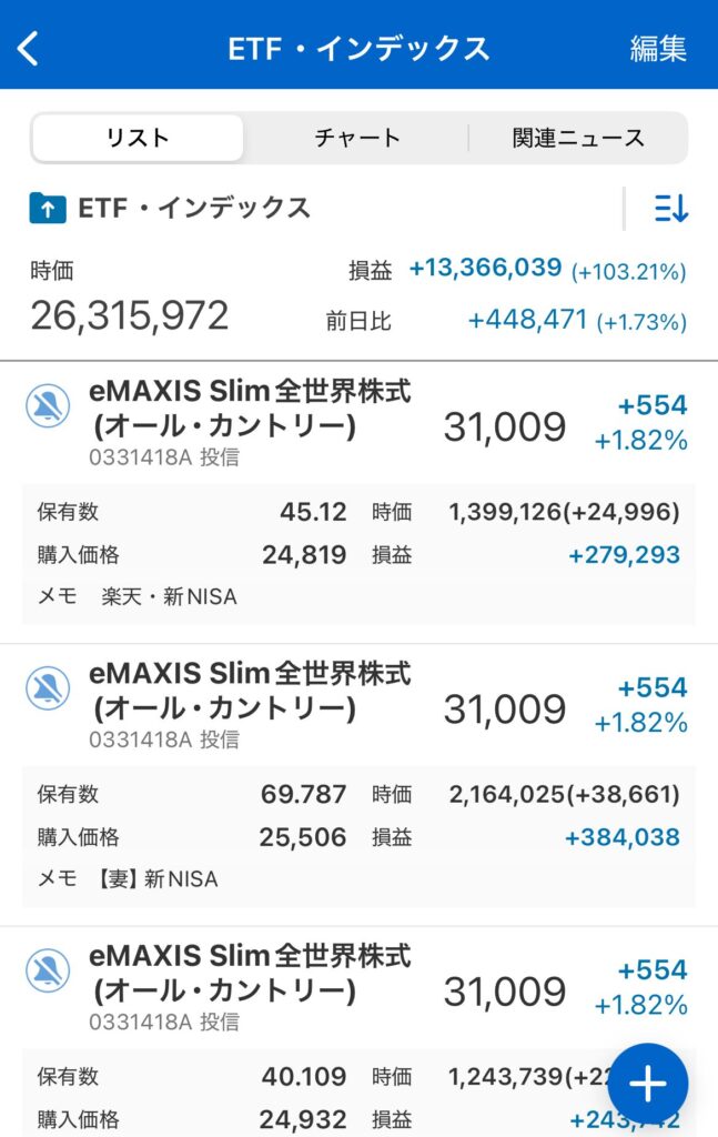 ここ最近の株高に追いつけず、1200万円到達を見逃してしまい1300万円になっていました。