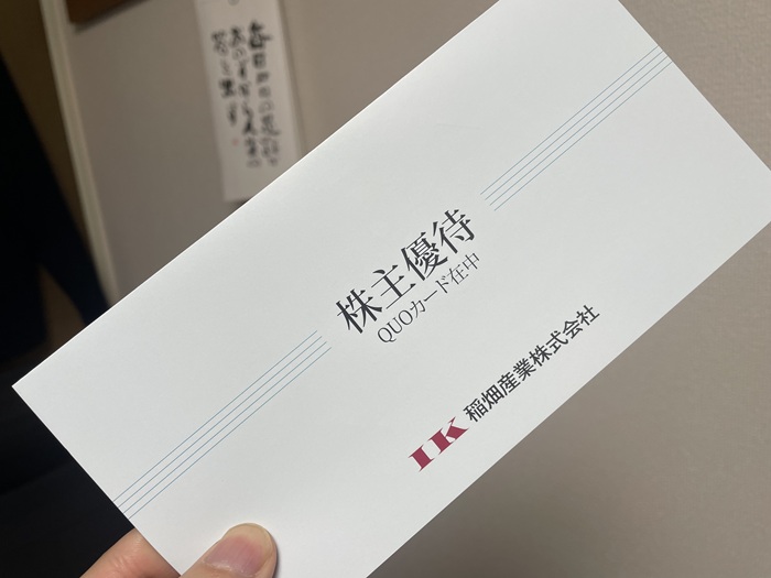 「稲畑産業」から初めてのクオカード(1000円分)が届きました。