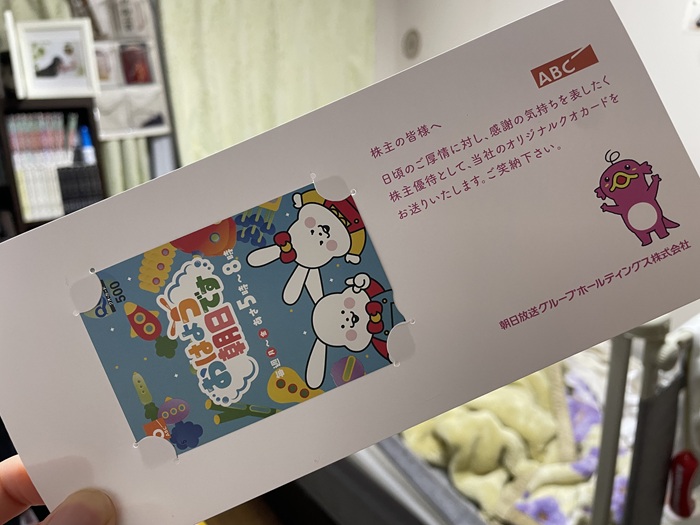 ホーム株・投資・税金 【株主優待】朝日放送からクオカードが届きました(6回目) 2025年12月13日 「朝日放送」から500円分のクオカードが届きました。 この一年で株価が復活気味。期待せずに持ち続けることが大事ですね。