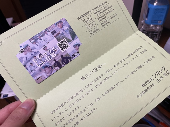 【株主優待】ソネックからクオカードが届きました(3回目)
