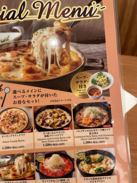 私はカルボナーラ風ドリアを注文。