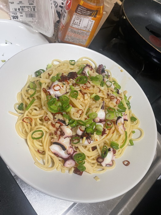 五右衛門のオンラインサイトから五右衛門で使っているパスタとオリーブオイルを購入。五右衛門で人気のタコのペペロンチーノを作ってみたらかなり近い味で再現できた。隠し味は味の素だった。