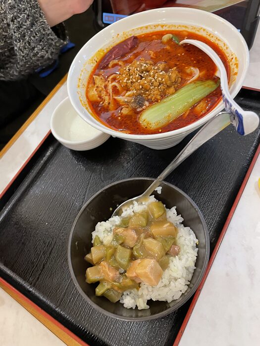 嫁は「マーラー刀削麺」を注文。