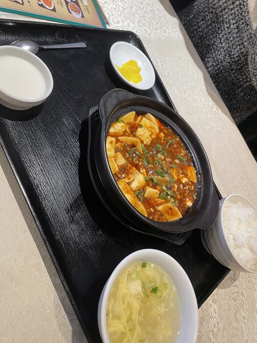 嫁が麻婆豆腐も食べたいということで麻婆豆腐定食も追加。意外と辛くて美味しかったです。